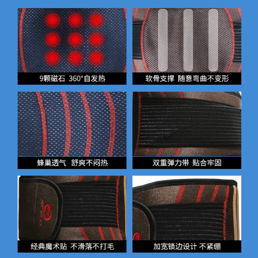 内嵌9颗磁石,面料采用整体发热材料,发热面积达到 100%。